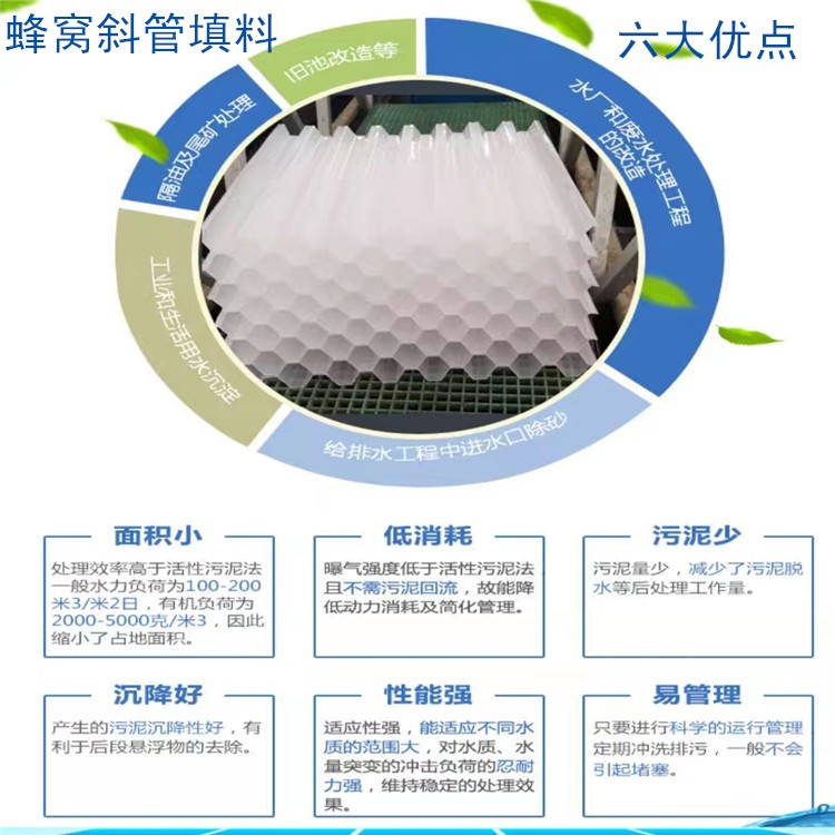 采用蜂窩斜管填料沉淀池其處理能力是平流式沉淀池的3-5倍,加速澄清池和脈沖澄清池的2-3倍直管直管主要用于生物濾池和高負荷生物濾池、塔式生物濾池。淹沒式生物濾池(又稱接觸氧化池)以及生物轉盤的微生物載體,對工業(yè)有機廢水和城市污水進行生化處理。